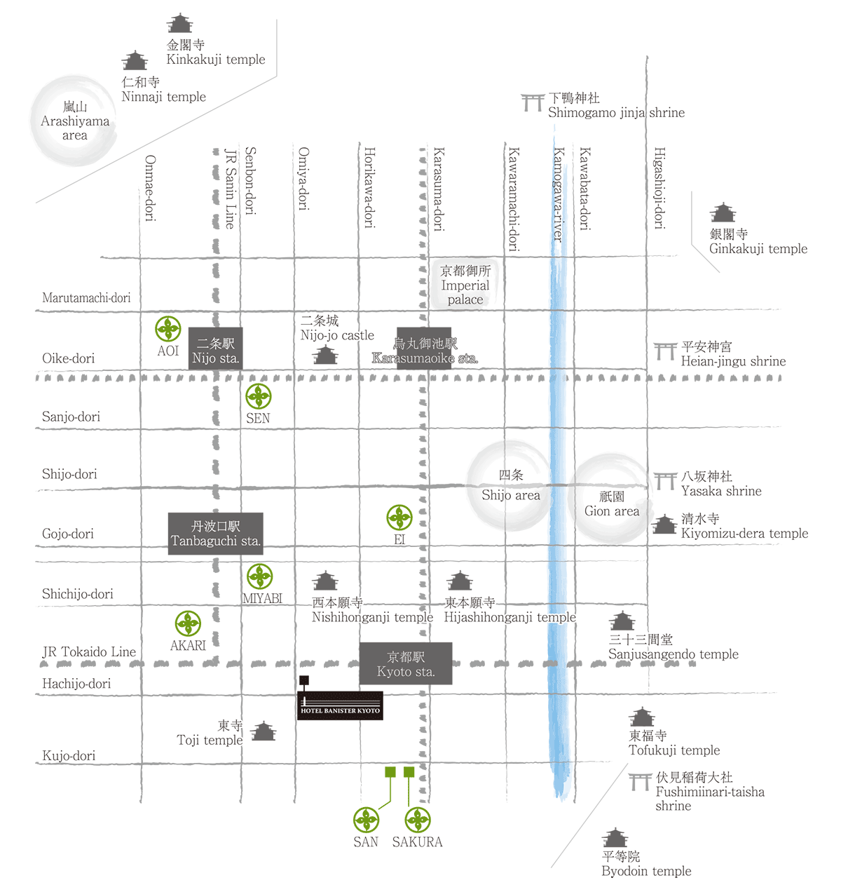 また、「ホテルバニスター京都」は、 スタイリッシュななかにもカジュアル感があり、気取らずリラックスできる場所として地元の方からも親しまれています。橋の欄干を意味するBANISTERの名に込めたとおり、 人との繋がりを大切に地域の皆さまや 訪れた世界中の人々の幸せの架け橋を支え、頼られるホテルを目指しています。